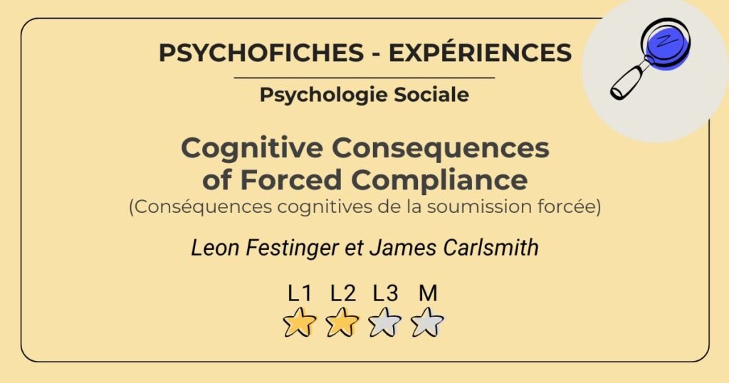 Expériences Expérience de Festinger et Carlsmith (1959) | Dissonance Cognitive | Psychofiches Lire la suite »